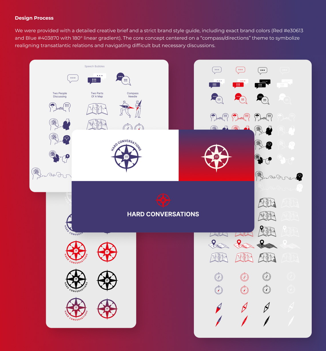 For the 2024 German American Conference at Harvard Kennedy School, we developed the official conference logo and a cohesive iconography system to support the event’s theme, “Hard Conversations.” As the largest student-led conference on transatlantic relations in the United States, the event required a visual identity that felt institutional, modern, and symbolically strong. The core concept centered around a compass motif, representing direction, dialogue, and the navigation of complex geopolitical discussions. In addition to the main logo, we created a set of thematic icons—including dialogue symbols, directional arrows, maps, and discussion elements—designed for use across digital and print materials. All assets were crafted in Adobe Illustrator and Figma, strictly aligned with the conference’s brand guidelines to ensure consistency across every touchpoint.